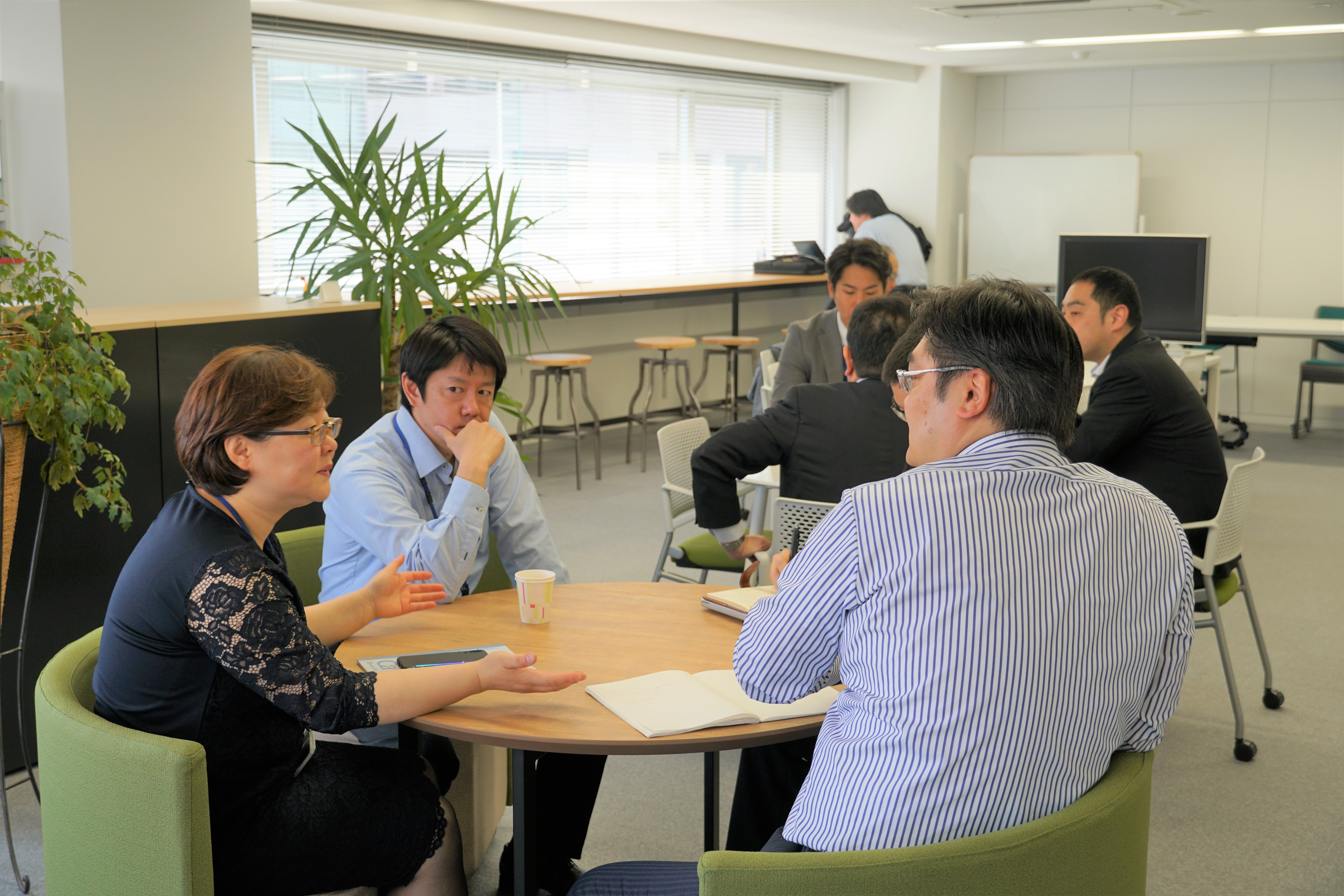(プロジェクトに関する打合せを社内オープンスペースでも行っています)