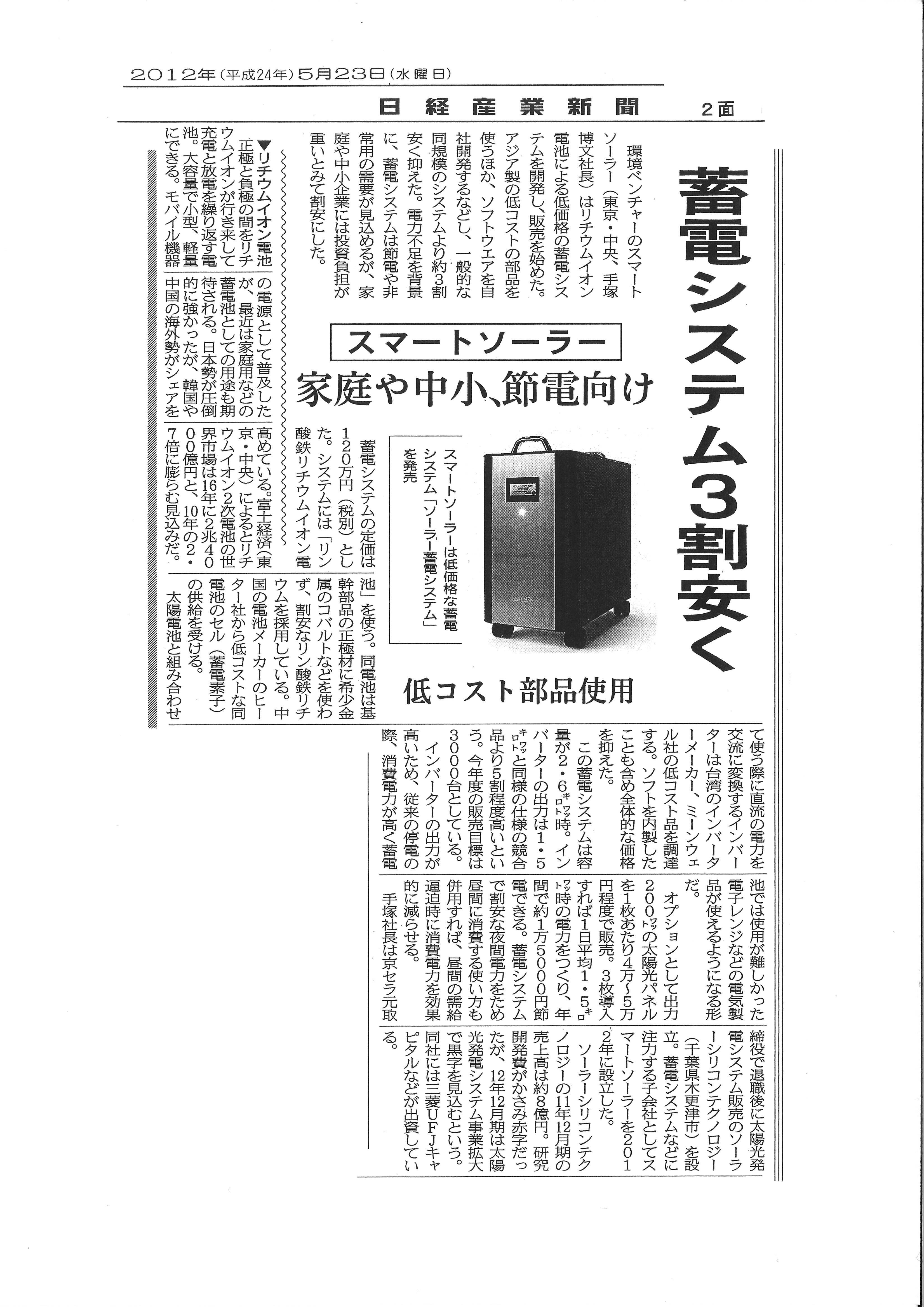 ■家庭用蓄電池付太陽光発電システム「ソーラー蓄電システム」の開発・販売