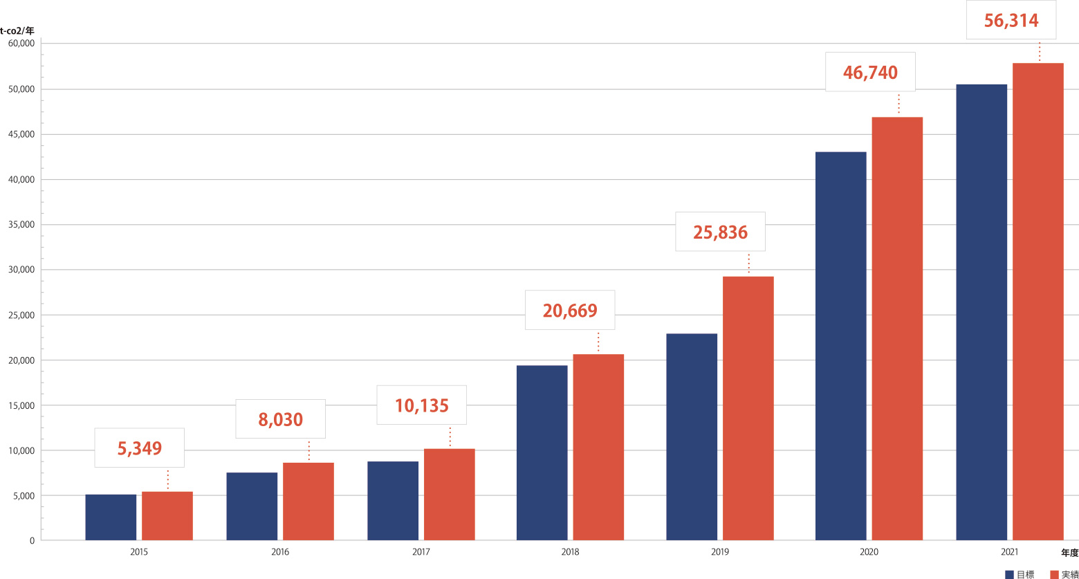 ※CO2削減量しては「地球温暖化防止のための緑の吸収現対策」環境省・林野庁資料、太陽光発電協会(JPEA) 「表示に関する業界自主ルール」を参考。