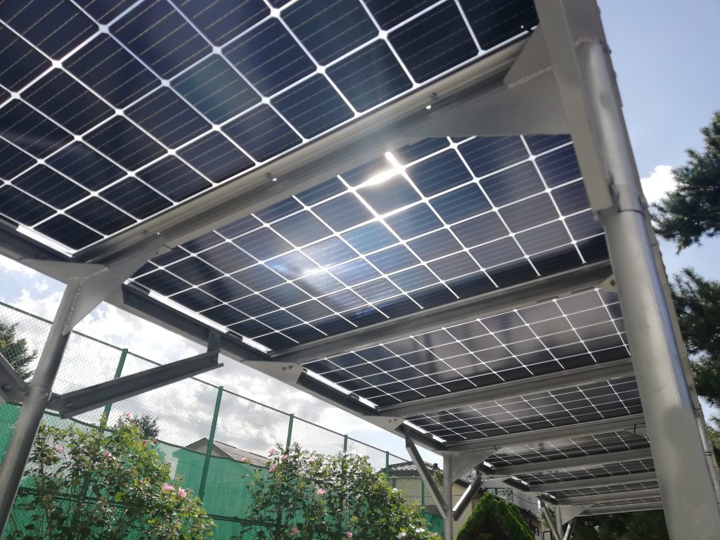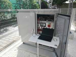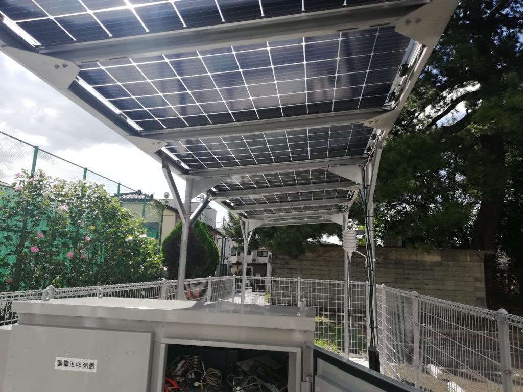 (日本語) ・両面発電型ダブルガラス太陽電池モジュールを開発・採用することにより、省スペース で多くの発電が期待できます。さらに、両面ガラスタイプであることにより長寿命です。 ・蓄電池にリチウムイオン電池を採用することにより、省スペースか且つ大容量化を実現しました。また、蓄電池にはBMS搭載にて電池状態を監視し安全を確保します。 ・充電システムには高効率MPPT制御装置を採用し、太陽電池の発電電力を効率よく蓄電池へ充電します。 ・インバータは高効率正弦波インバータを使用し、自販機へ対応できる仕様としました。