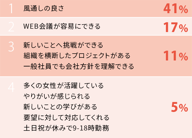 多くの女性の方が活躍されている環境に働きやすさを感じます。