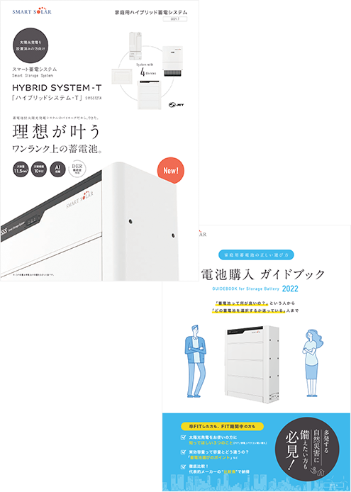 ハイブリッド型蓄電池の商品カタログと卒FIT後の余剰電力の活用方法をガイドブックでご紹介しています。 -