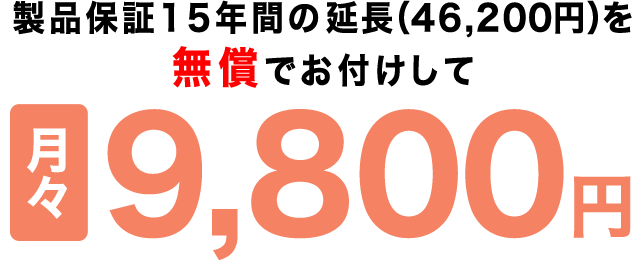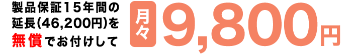 ・製品保証15年間への延長(46,200円)を無償でお付けします。