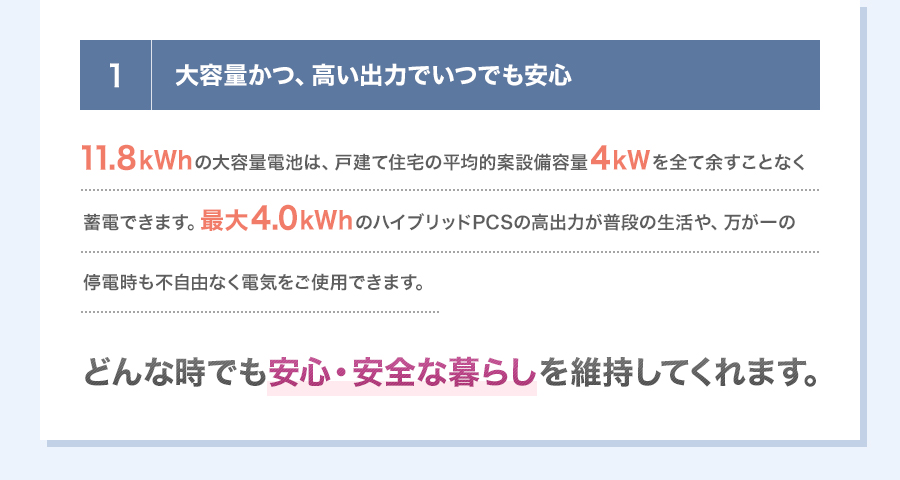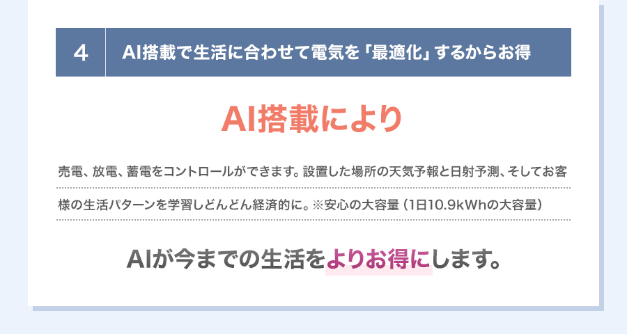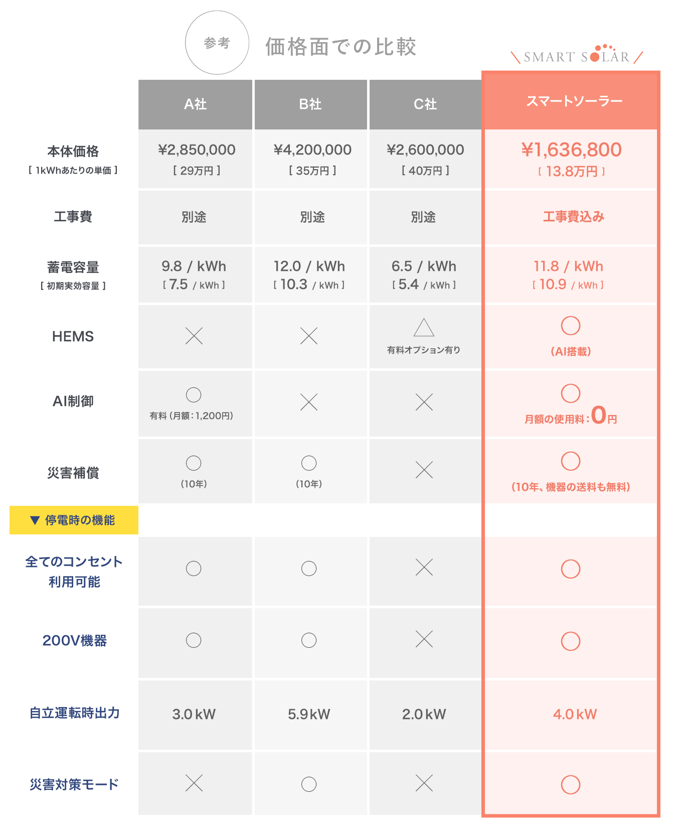 ・余剰電力24円/kWh買取(1年間限定)。※沖縄県、離島を除く