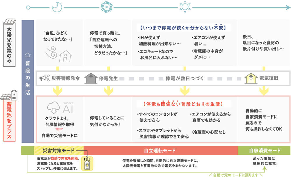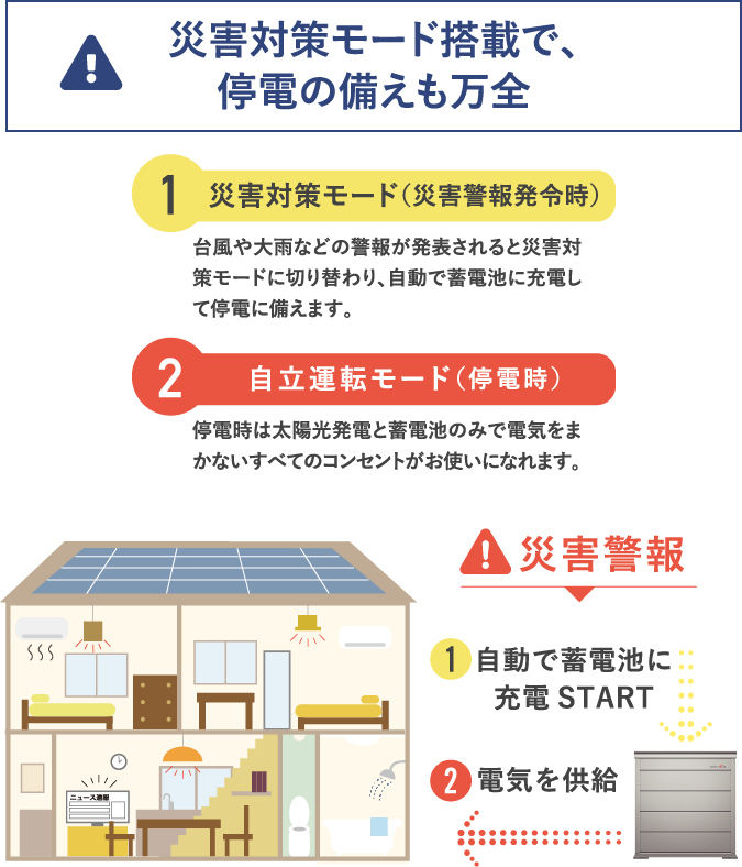 次の場合はいずれのご応募も無効となりますので、ご注意ください。ご連絡先の内容に不備がある場合。ご連絡先登録完了後に住所変更のご連絡がない場合。お客様のご住所が不明・連絡不能などの理由により賞品がお届けできない場合。現場調査の結果により、スマート蓄電システムが設置できない場合。その他、ご応募に関して不正な行為があった場合。