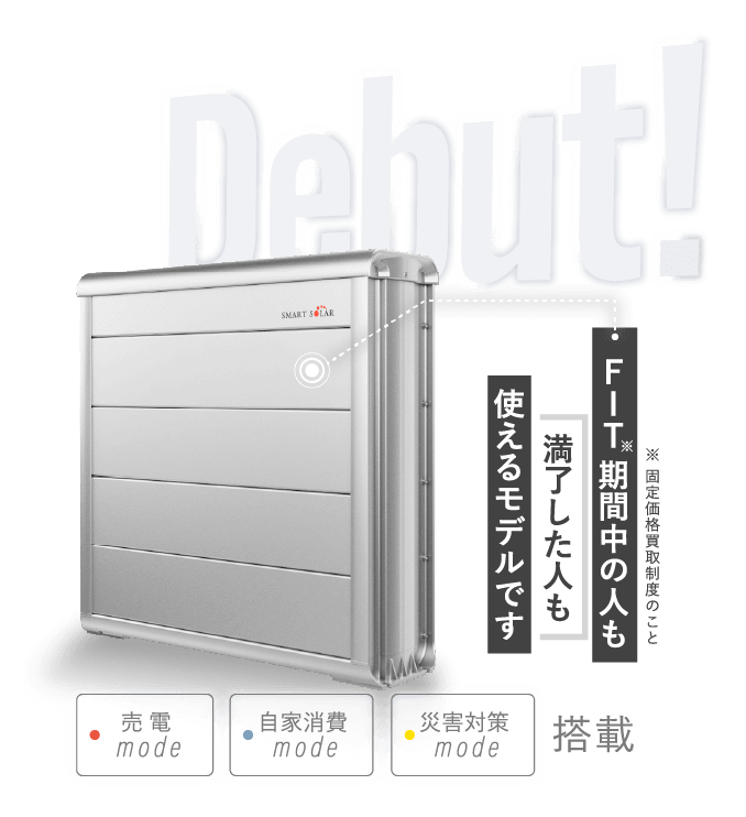 余剰電力はスマート電気株式会社(小売電気事業者登録番号A0654)が買い取ります。スマート電気株式会社はスマートソーラー株式会社の100%子会社です。スマート蓄電システムを設置し、固定買取期間満了後から買取開始。固定価格買取期間が2022年12月31日までに満了となる方が対象となります。買取価格24円/kWhは税込価格です。24円/kWhでの買取はスマート電気株式会社への電力買取開始日から1年間限定となります。2年目以降の買取価格は見直しとさせていただきます。24円/kWhの買取電力量は毎月50kWhまでです。50kWhを超えた分は12円/kWh(税込)で買取予定です。応募期間は、2021年4月1日~5月28日まで。固定価格買取期間満了者が、スマート蓄電システム設置後、グリーンモード(自家消費モード)で運転いただける方が対象です。本特典はお一人様1回限りとさせていただきます。本特典はご応募いただいたご本人様のものとし、他人への譲渡、換金はできません。沖縄、離島を除く国内設置のみが対象です。本キャンペーンの対象者は太陽光発電システム10kW未満・固定価格買取期間10年間の方になります。次の場合はいずれのご応募も無効となりますので、ご注意ください。ご連絡先の内容に不備がある場合。ご連絡先登録完了後に住所変更のご連絡がない場合。お客様のご住所が不明・連絡不能などの理由により賞品がお届けできない場合。現場調査の結果により、スマート蓄電システムが設置できない場合。その他、ご応募に関して不正な行為があった場合。