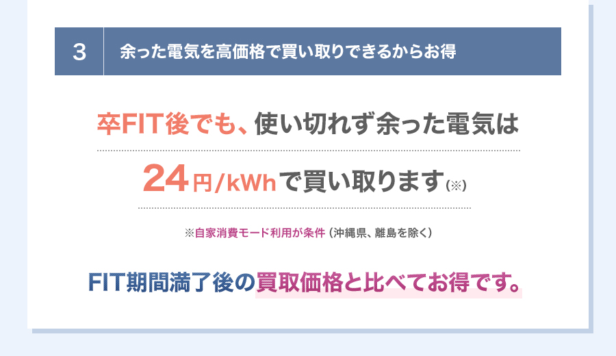 <余剰電力24円/kWh買取(1年間限定) 沖縄県、離島を除く>