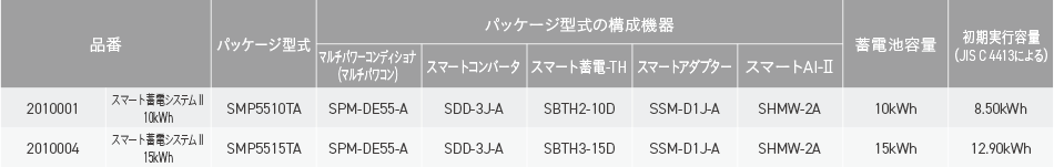 | パッケージ型式 | パッケージ型式の機器構成 | 蓄電池容量 | 初期実効容量 (JIS C 4413による) |