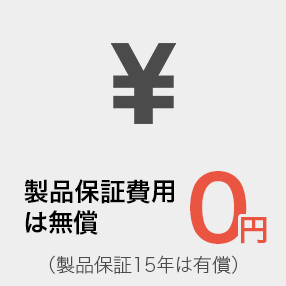 製品をご購入いただいたお客様には製品保証10年を無償でご提供しています。さらに続く安心をお求めの方には製品保証15年を有償のオプションとしてご用意していますので、ご購入の際にどちらかをご選択いただけます。