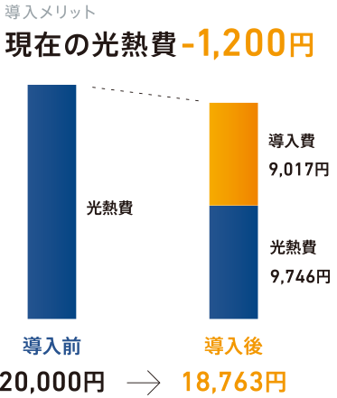 プラン導入後の電気代削減効果が大きいため、月々の支払を入れても、導入前よりも経済効果があり、長期間にわたって家計負担の差額となります。