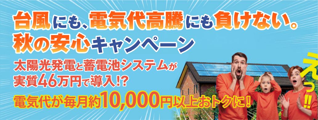 台風にも、電気代高騰にも負けない。秋の安心キャンペーン。